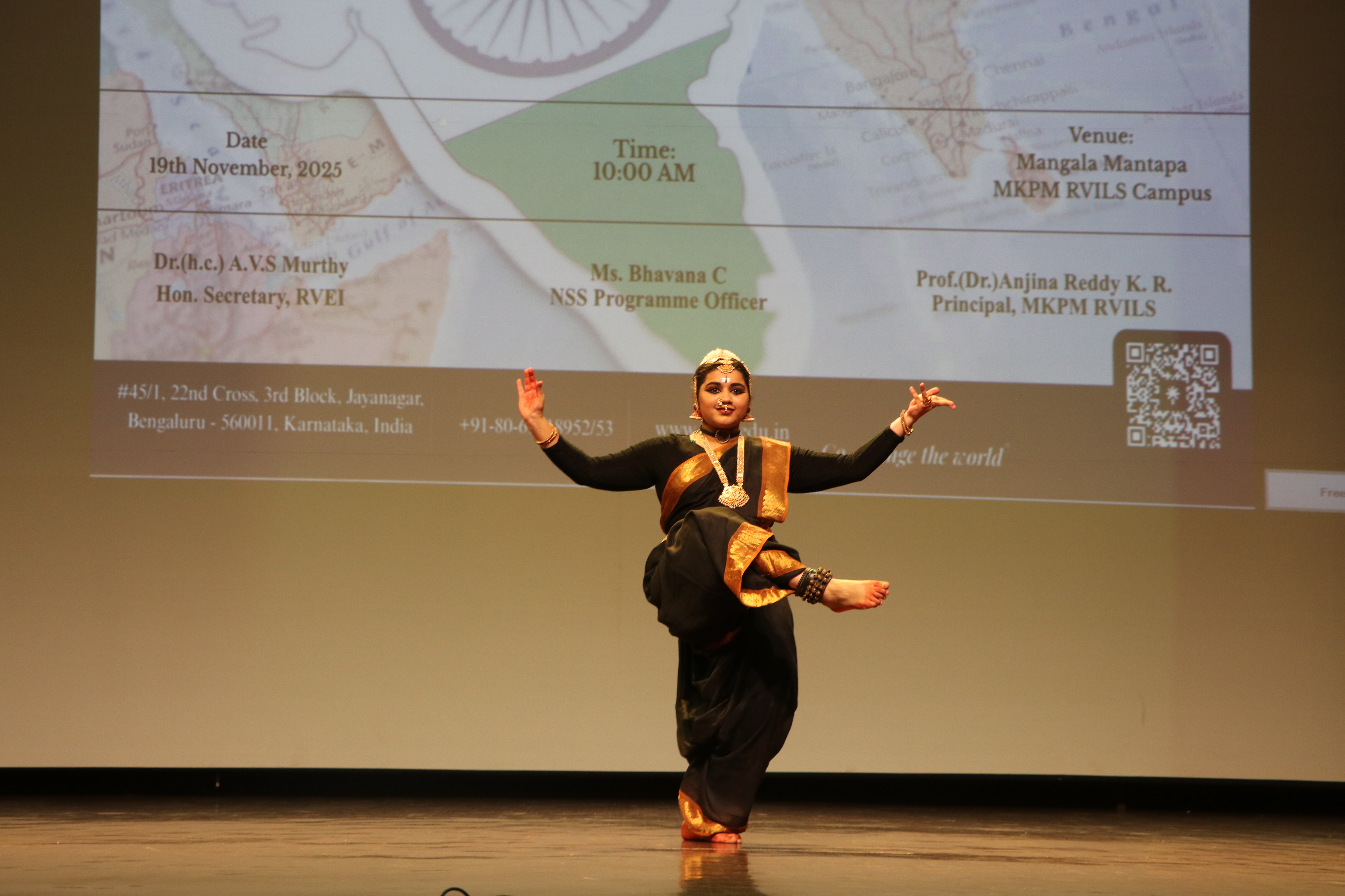 In commemoration of the 79th Independence Day, the National Service Scheme (NSS) unit of MKPM RV Institute of Legal Studies, Bengaluru, proudly organised the Independence Day celebrations on 15th August 2025 at Mangala Mantapa, MKPM RVILS, beginning at 9:30 a.m. The programme was gracefully presided over by Prof. (Dr.) Anjina Reddy K. R., Principal, delivered an inspiring address on the significance of the day and the responsibilities of young citizens in nation-building. The celebration witnessed the enthusiastic participation of faculty and students, who came together in patriotic fervour. The event was further enlivened by vibrant cultural performances organised by the NSS unit, reflecting the spirit of unity, freedom, and pride in our nation’s heritage.