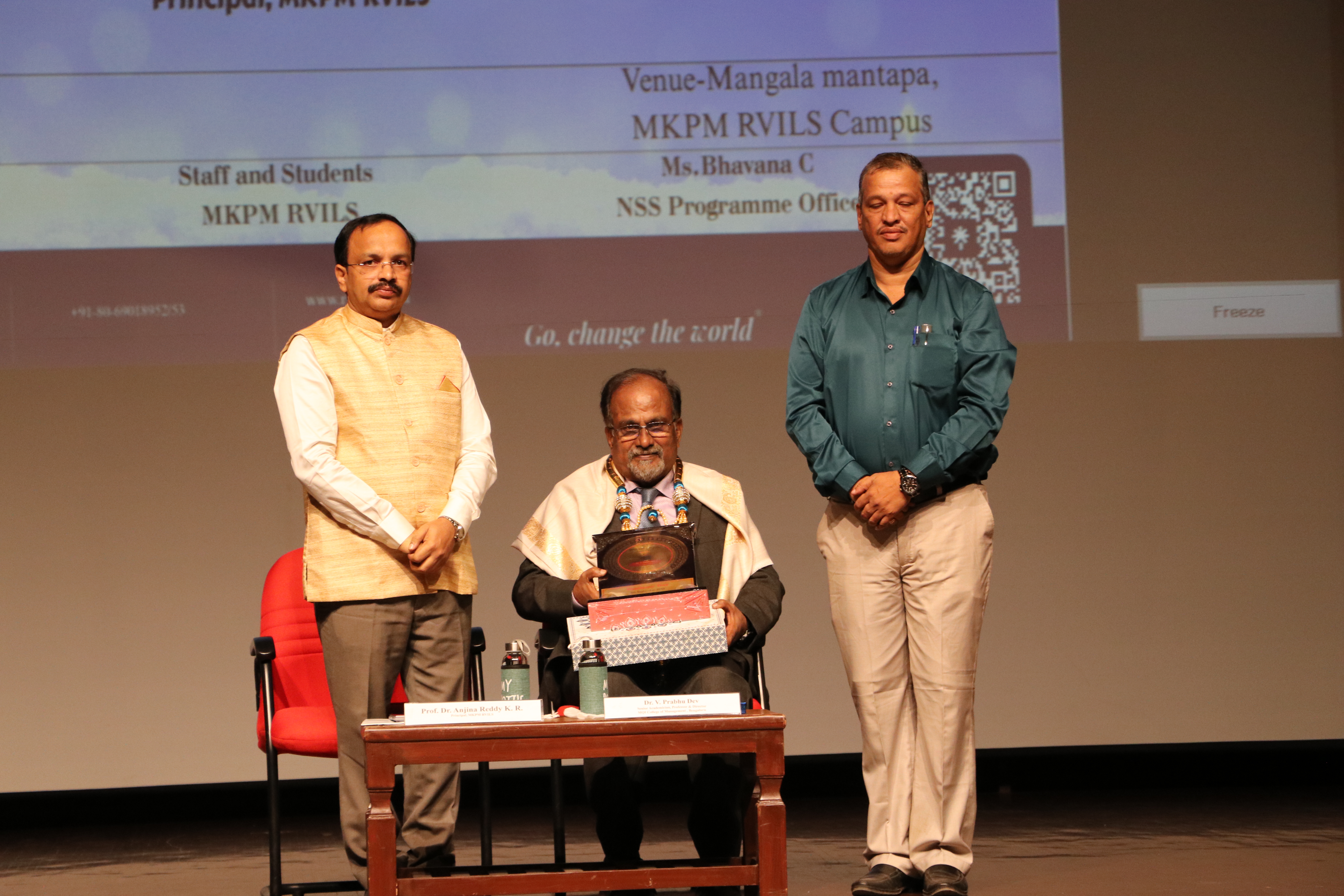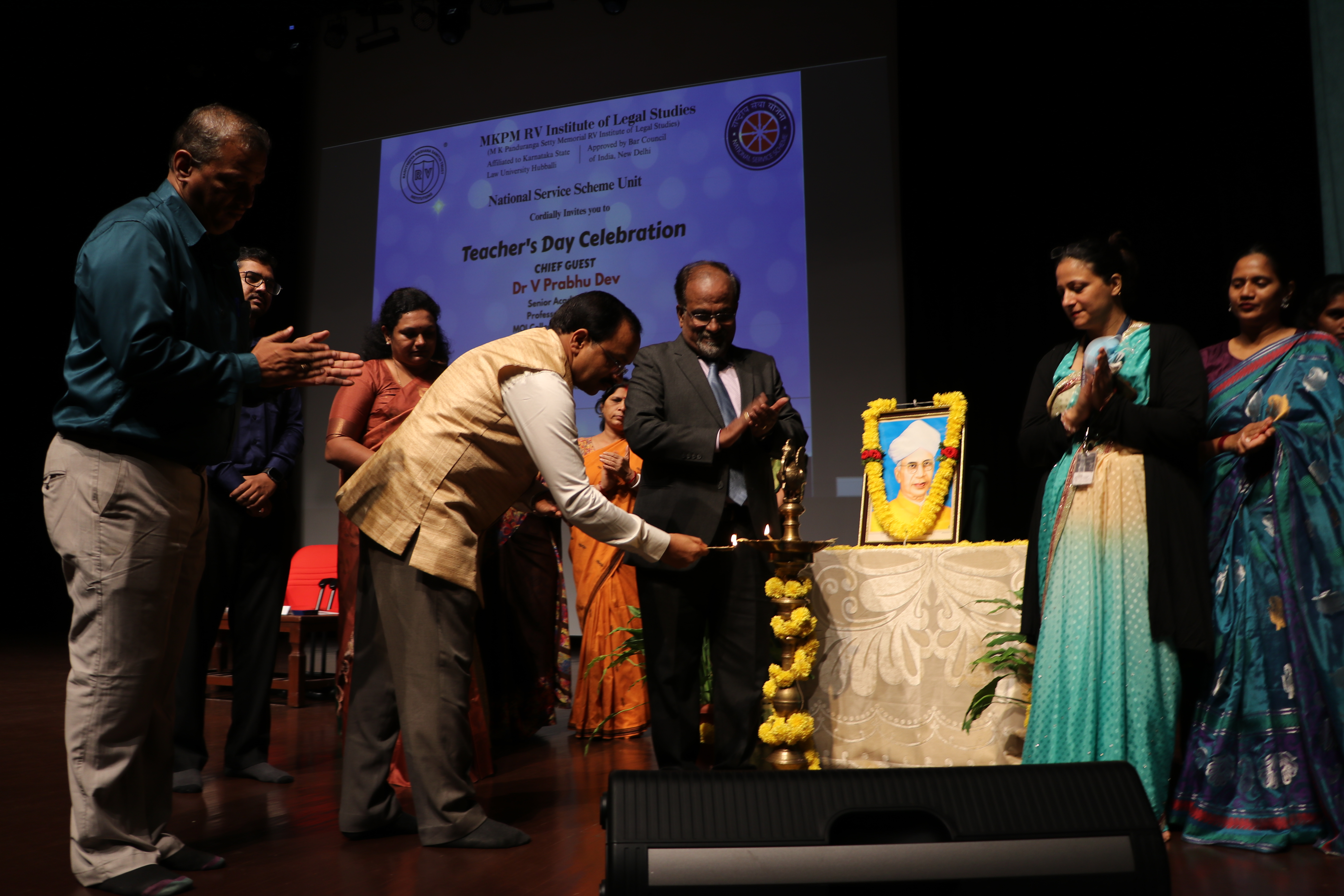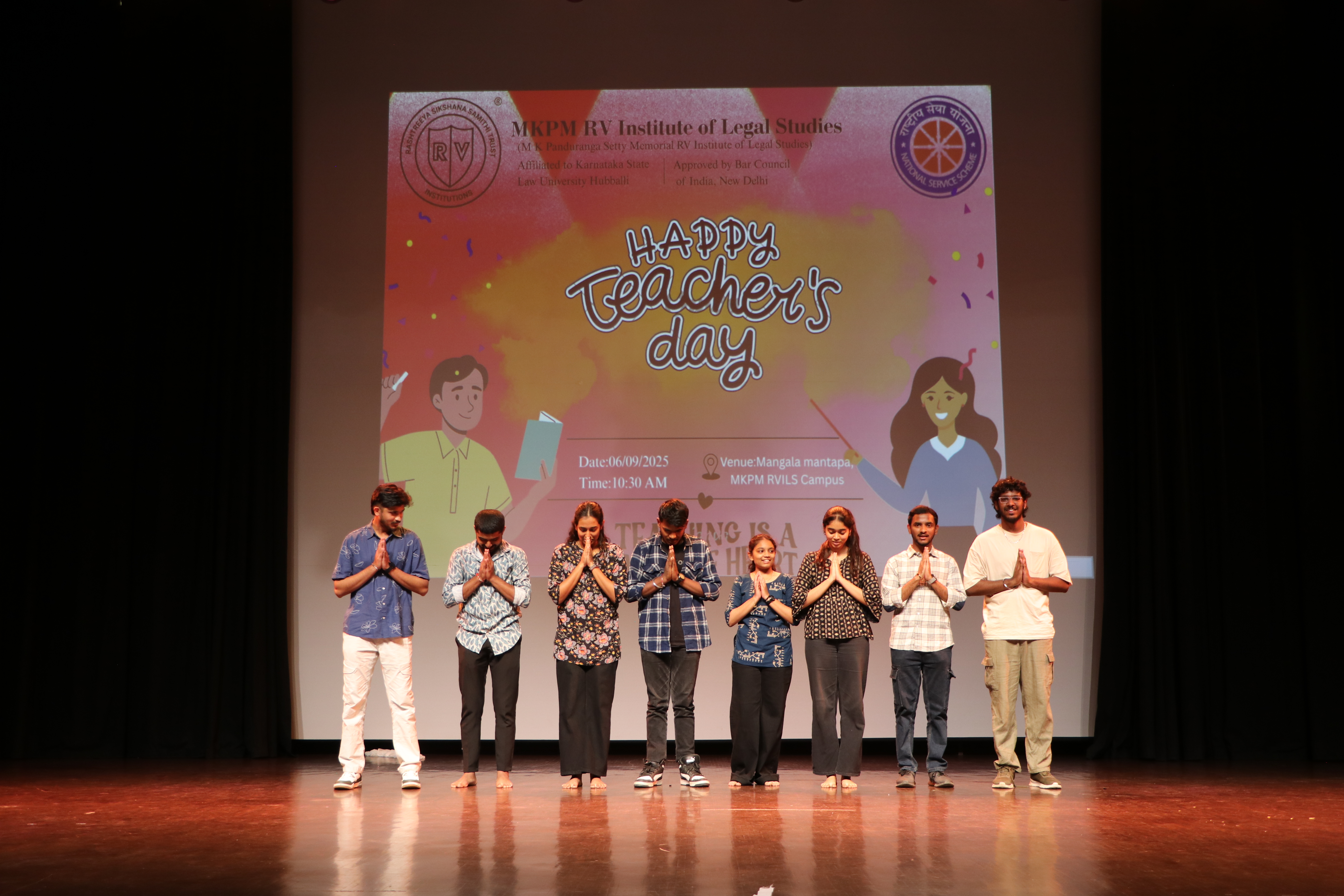 On the 6th of September 2025, the campus of MKPM RV Institute of Legal Studies resonated with warmth, gratitude, and festivity as the students came together to celebrate Teachers’ Day. The programme, beautifully organised by the NSS Unit under the guidance of Ms. Bhavana C., NSS Programme Officer, was a heartfelt tribute to the mentors who illuminate the path of knowledge and wisdom. The celebration commenced with an inspiring address by Prof. Dr. Anjina Reddy K.R., Principal of MKPM RVILS, who spoke eloquently about the timeless bond between teachers and students and the enduring value of education as the foundation of society. The highlight of the day was the presence of the Chief Guest, Dr. V. Prabhu Dev, Senior Academician and Director at MCM – MQI College of Management, whose stirring speech on the significance of Teachers’ Day filled the hall with admiration for the noble profession. His words painted teachers as beacons of light, shaping futures with patience, passion, and dedication. The event gracefully transitioned into a series of informal celebrations, where students expressed their affection through vibrant performances, songs, and creative gestures of appreciation. The day concluded with smiles, laughter, and an overwhelming sense of gratitude, making it a truly memorable occasion.
