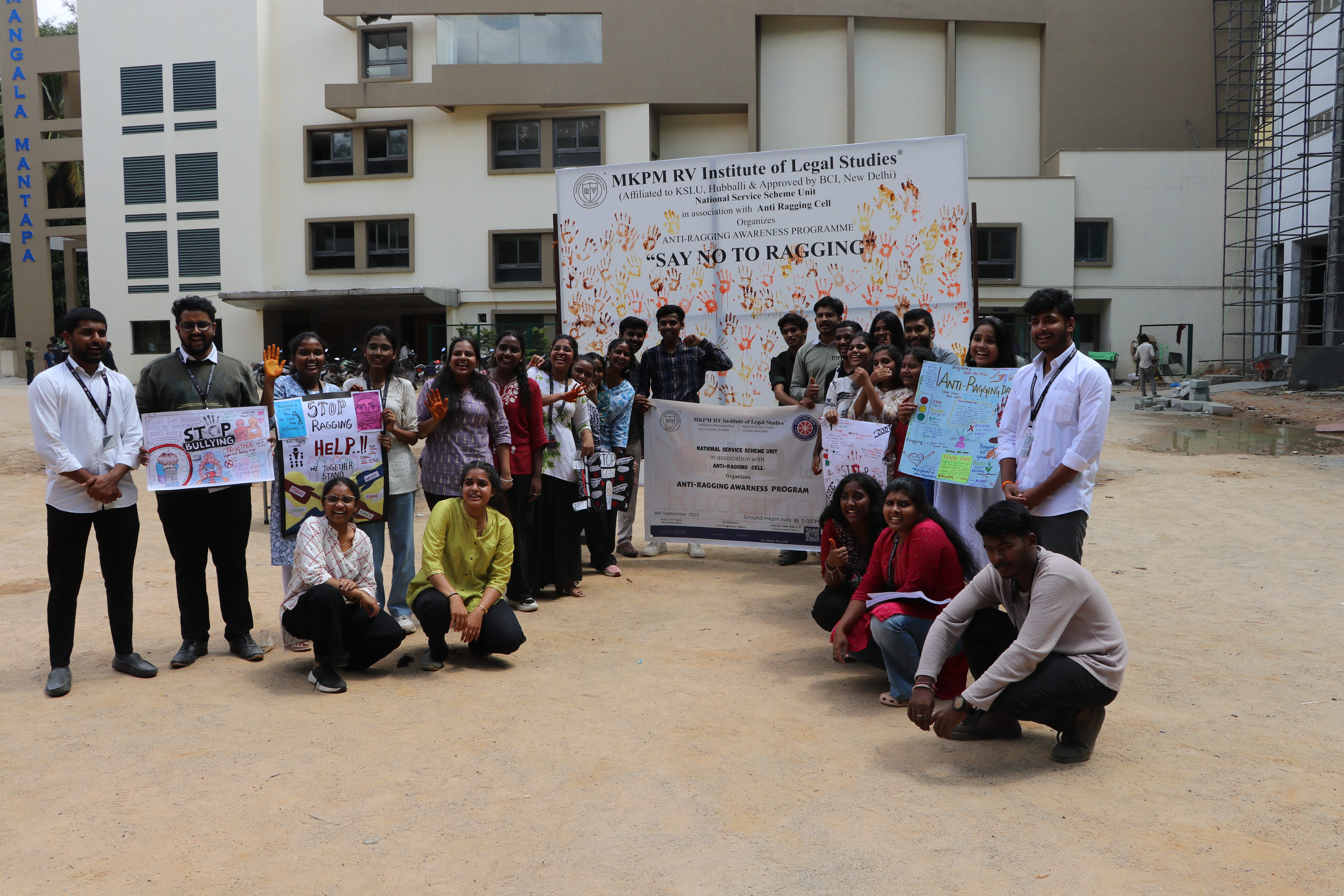 On 8th September 2025, the NSS Unit, in collaboration with the Anti-Ragging Cell of MKPM RV Institute of Legal Studies, organised a vibrant Anti-Ragging Awareness Programme at Mangala Mandapa with presentations. The initiative aimed at sensitising students and the community about the importance of cultivating a safe and inclusive environment, free from the menace of ragging. The programme began with a warm welcome to Prof. Dr. Anjina Reddy K.R., Principal of MKPM RVILS, whose presence added grace and encouragement to the occasion. All teaching and non-teaching Staff, along with students, attended the event, extending their support to this noble cause. Under the able guidance of Ms. Bhavana C., NSS Programme Officer, the students took the lead in creating impactful awareness. The highlight of the event was a powerful flash mob, capturing the attention of the audience through energetic expression, followed by a street play that portrayed the harmful consequences of ragging and the importance of solidarity, respect, and discipline among peers. The event not only engaged and spread awareness but also reflected the commitment of MKPM RVILS to nurture a safe, supportive, and value-driven academic atmosphere.