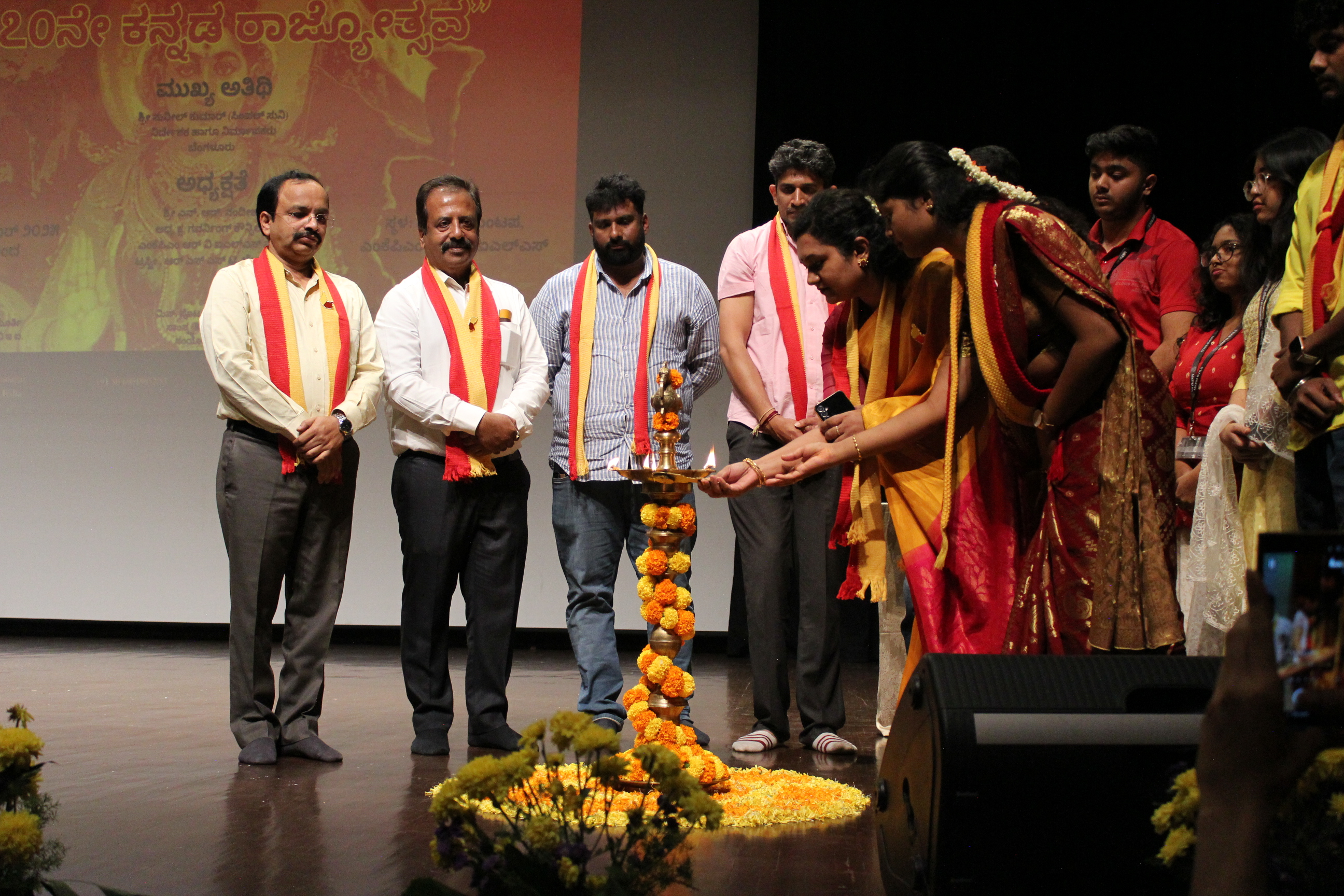 The Kannada Rajyothsava celebrations at MKPM RV Institute of Legal Studies were held on 29th November, 2025, embracing the rich cultural heritage and linguistic pride of Karnataka. The event began at 10:00 AM on campus with a dignified flag hoisting ceremony, where students, faculty, and guests came together in unity and respect. The singing of the Naada Geethe added a patriotic and heartfelt touch, setting an inspiring tone for the day. The formal programme commenced at 10:25 AM in the Mangala Mantapa auditorium. A soulful invocation dance was performed as a graceful presentation that created a serene and devotional atmosphere and provided a meaningful start to the celebration. The Welcome Address was delivered by Prof. (Dr.) Anjina Reddy K. R., Principal, MKPM RVILS, emphasised the significance of Kannada Rajyothsava and encouraged students to cherish and uphold their culture, language, and traditions. He appreciated the efforts of the organising team and urged students to continue participating actively in cultural events. Following this, the dignitaries came forward for the Lighting of the Lamp, symbolising enlightenment, positivity, and collective harmony. This moment marked the official commencement of the cultural celebrations. The programme progressed with the introduction of the Chief Guest, where the accomplishments of Shri Sunil Kumar (Simple Suni), a renowned Kannada film director and producer, were highlighted, acknowledging his creative contributions to the Kannada film industry. In his inspiring address, the Chief Guest shared insights from his journey in cinema, motivating students to remain dedicated, confident, and passionate about their aspirations. He emphasised the importance of hard work and encouraged everyone to value and uphold their cultural heritage. The event concluded with the Prize Distribution Ceremony, where awards were presented to the winners of various competitions organised as part of the Kannada Rajyotsava celebrations. This segment brought excitement and encouragement to the awardees, inspiring others to participate with enthusiasm in upcoming events. The celebration stood as a vibrant expression of cultural pride, unity, and student engagement, reflecting the institution’s commitment to honouring Karnataka’s rich legacy.