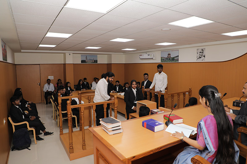 The institution believes highly in practical knowledge and procedures, thereby maintaining a well furnished Moot Court for training of the students. The students are encouraged to participate in College level, National and International level competitions. Every semester, there is a requirement for the students to submit a report, for which they are taken to high courts for observations.